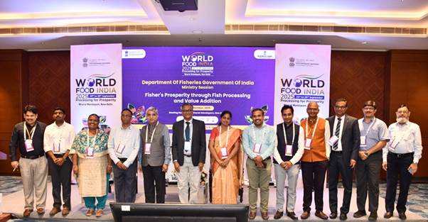 New Delhi, Delhi, 27th of September, 2025 : The Department of Fisheries (DoF) under the Ministry of Fisheries Animal Husbandry and Dairying (MoFAHD) organized a technical session titled “Fish Tech for Fishers’ Prosperity: Innovations in Processing and Value Addition” on the sidelines of World Food India 2025 at Bharat Mandapam, New Delhi. Aligned with Prime Minister Shri Narendra Modi’s call to strengthen marine product processing through modern plants, cold chains, and smart harbours, the session brought together experts, policymakers, and industry stakeholders. Discussions centered on innovative technologies and strategic interventions to minimize post-harvest losses, enhance quality, boost productivity, and promote exports in the fisheries sector.