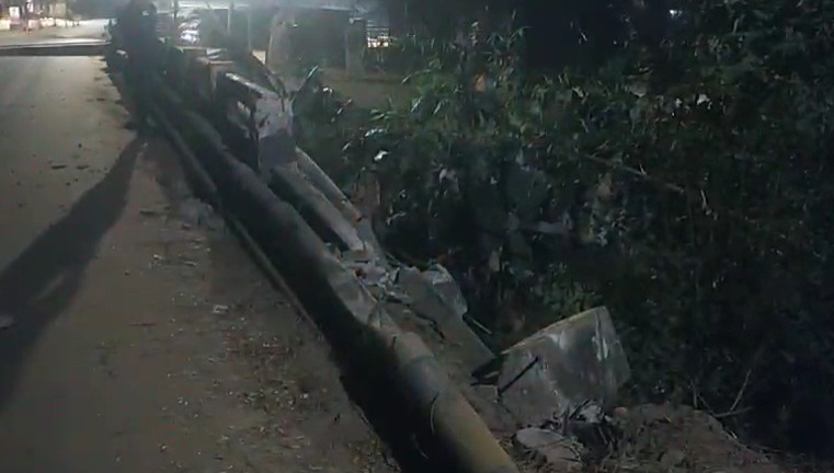 Teliamura, 6th of February, 2024 : A person injured as car into roadside ditch in Teliamura. The incident on Monday night at 11:15 pm on the national highway in front of the Municipal Council office, SDPO office premises under Teliamura police station. According to the details of the incident, a car no TR01H 4353 lost control on the way from Ambassa to Kalyanpur and fell into the ditch on the bridge railing. Hearing the loud sound, the local residents rushed.