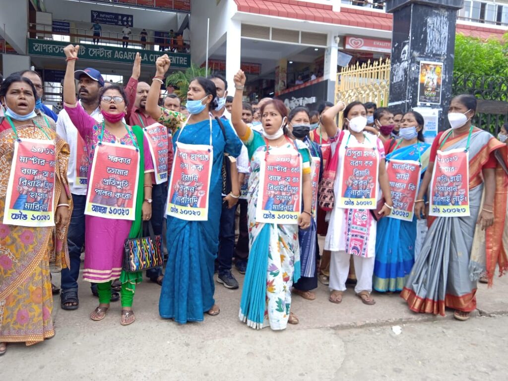 Terminated, 10,323 Teachers’ protested demanding to permanent solution their jobs at City Centre, Agartala on Monday 20th September, 2021.
