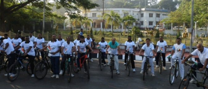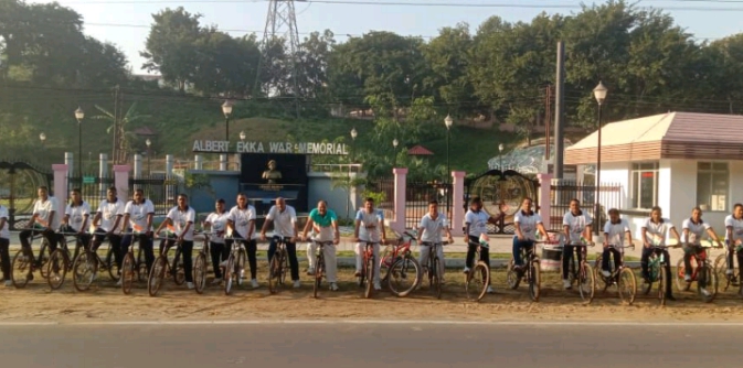 To mark the 147th birth anniversary of Sardar Vallabhbhai Patel, the unifier of India 124 Bn CRPF has conducted a grand cycle rally to pay homage to this iron man of India. Under the leadership of Shri. Mukesh Tyagi, Commandant of 124 Bn CRPF has conducted cycle rally to commemorate the 147th birth anniversary of “Sardar Vallabhbhai Patel” who had unified the country. The rallies were started from HQ/124 Bn, CRPF Salbagan and Officers, SO’s (Subordinate Officers) and men were participated to pay homage to Sardar Vallabhbhai Patel.