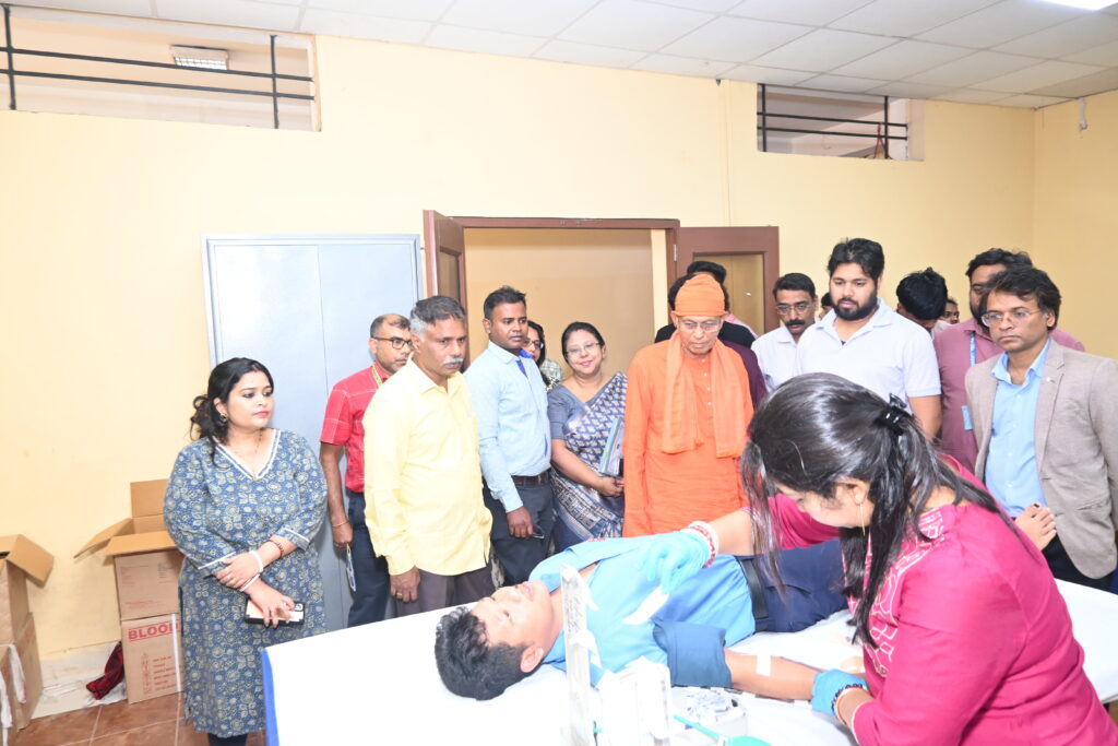 The programme was inaugurated by Swami Amartya Nanda Maharaj of Ramakrishna Mission, Agartala, who graced the occasion as the Chief Guest. Dr.Subhashis Roy, Deputy Director of Blood Transfusion Services, Government of Tripura, attended the event as the Special Guest. Welcome Address given by Dr. A. Ranganath, Registrar of the ICFAI University Tripura. Students, faculty members, and staff from various departments of the University, along with members of the NSS Unit, actively participated in the voluntary blood donation camp. The collected blood units were managed by the Blood Transfusion Services& IGM Hospital Agartala.