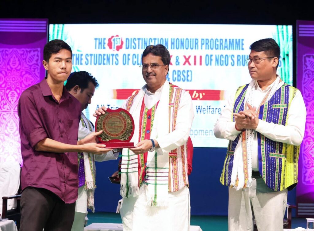 Agartala, Tripura, 26th of July 2025 : With the jointly initiative of All Tripura NGO Welfare Trust and the All Tripura NGO Boarding Development Committee has been organized 1st distinction honour Ceremony of Madhyamik & Higher Secondary Examination (TBSE & CBSE ) 2025 at Rabindra Satabarshiki Bhawan, Agartala, Tripura on Saturday (26th July, 2025). In the presence of many distinguished dignitaries Hon’ble Chief Minister Dr. Manik Saha inaugurated the event by lighting the lamp.