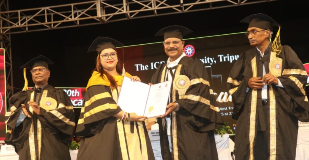 Agartala, Tripura, 14th of September, 2025 : With the initiative of ICFAI University organized 20th Convocation at University campus, Kamalghat, Agartala, Tripura on Saturday (13th September, 2025). In the presence of many distinguished dignitaries Hon’ble Governor of Tripura Indrasena Reddy Nallu inaugurated the programme by lighting the lamp.