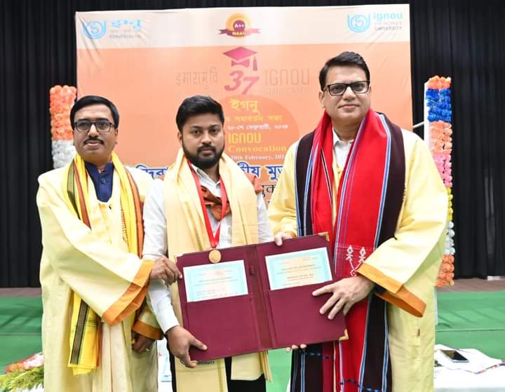 340 students have received their Degrees in person at the Convocation held at Agartala. 1,294 students were awarded their degrees in absentia. Thus, altogether 1,634 students got their degrees at Regional Centre, Agartala. Tamal Das, a student of Master of Arts in Sociology has bagged Gold Medal for scoring highest marks in MA Sociology programme among all MA-Sociology students registered with the University throughout India.
