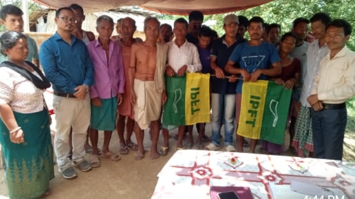 Under the leadership of Premsadhan Tripura & Karanjoy Tripura a joining programme has been conducted here in Dumburnagar RD block in Dhalai district today where quitting CPIM & TIPRA Motha parties total 58 Voters from 26 families have come under the banner of IPFT organization. As per the report, step by step indigenous people are returning back to their genuine organization IPFT which is a dedicated party which always think betterment & welfare for the indigenous communities of the TTAADC. The divisional president Premsadhan Tripura & youth IPFT divisional president Karanjoy Tripura have jointly accepted the new intruders and motivated the new faces with the ideology of IPFT organization.