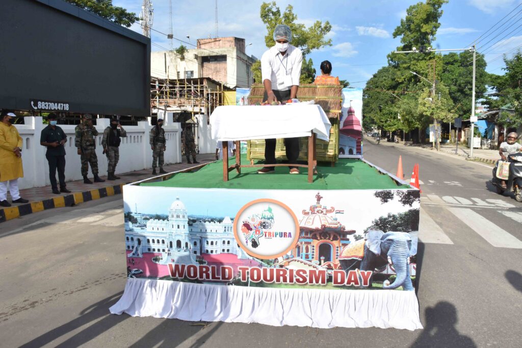 A Colourful Rally on the occasion of World Tourism Day organized by Tripura Tourism Development Corporation Ltd at Agartala on Monday (27th September, 2021). Hon’ble Agriculture, Transport & Tourism Minister Pranajit Singha Roy and other dignitaries were present.