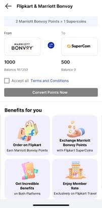 Link Accounts à Convert Flipkart SuperCoins to Marriott Bonvoy Points (vice versa) à Redeem across Hotel Stays & Shopping