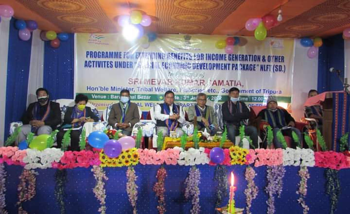 A programme for extending benefits for income generation and other activities under “Special Economic Development Package” NLFT (SD) has been organized by the Tribal Welfare Department, on 3rd January, 2022 at Barakathal Bazar under Mohanpur Sub-Division, West Tripura. Hon’ble Tribal Welfare Minister Mevar Kumar Jamatia has inaugurated the programme.