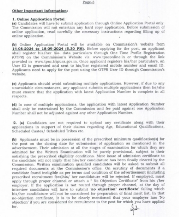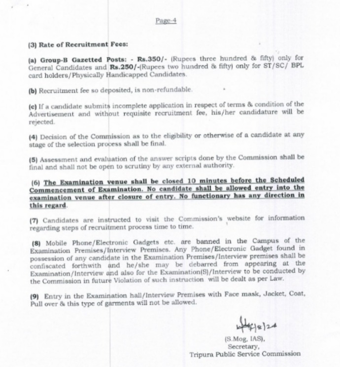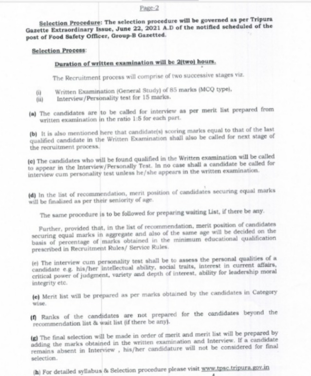 Information detailed regarding please visit in the Website – https:// tpsc.tripura.gov.in