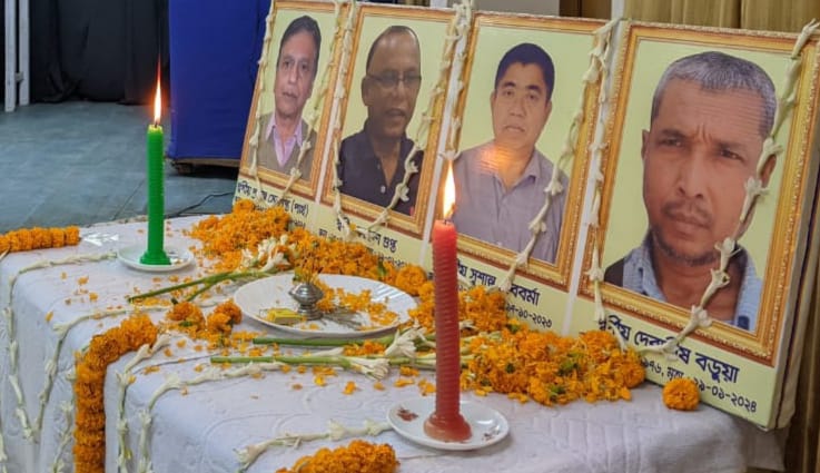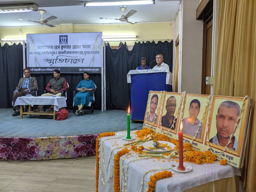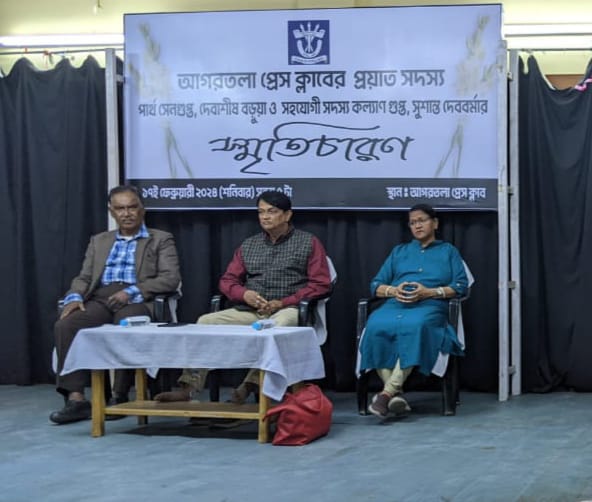 Agartala, 17th of February 2024 : With the initiative of Agartala Press Club conducted a condolence meeting in memory of Veteran Journalists Partha Sengupta, Kalyan Gupta, Sushanta Debbarma and Debasish Barua at Agartala Press Club on Saturday (17th February, 2024). In the beginning, journalists, photojournalists and their family members paid floral tribute them. After that everyone stood for some time and paid their respects to their memory. As a worthy successor of the hard and difficult, Ramakanta Dey Secretary of Agartala Press Club read the condolence message. Agartala Press Club President Jayanta Bhattacharjee, Senior Journalists Sanjib Deb, Haradhan Debnath, Harihar Debnath, Pranab Sarkar, Parijat Dutta, Citra Roy discussed the memory of the four journalists. On behalf of Agartala Press Club, condolence letters were handed over to the relatives of deceased members Prashanta Sengupta (Partha), Kalyan Gupta, Sushanta Debbarma and Debasish Barua.