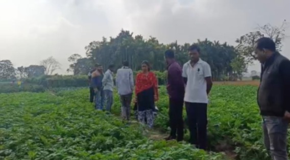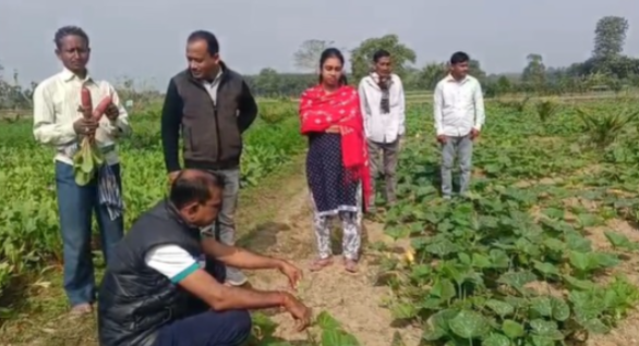 The officers were very pleased after seeing the crops produced by the farmers. Farmer Sumangal Das is engaged in oil palm plantation and the cultivation of vegetables, mustard, potatoes, pumpkin, carrots, and chilies. Farmer Ajit Das cultivates watermelon and brinjal. The officers inspected the crops grown by these farmers.