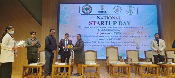 New Delhi, Delhi, 17th of January, 2026 : On the occasion of National Startup Day 2026, the All India Institute of Ayurveda (AIIA), through its startup incubation centre Incubation Centre for Ayurveda Innovation and Entrepreneurship (AIIA–iCAINE), successfully organized an Awareness Programme on MSME Opportunities for Ayurveda-based Startups at its New Delhi campus. The programme was conducted in collaboration with the MSME–Development & Facilitation Office, Government of India.