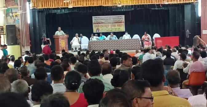 AIKS, TKMU and GMP organized hall meeting at Udaipur town hall on Tuesday (26th April, 2022). CPI(M) Tripura State Committee Secretary Jitendra Chaudhury and other leaders were present at the meeting.