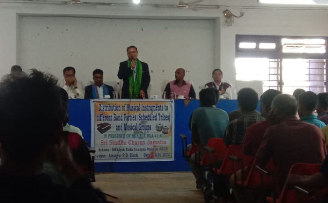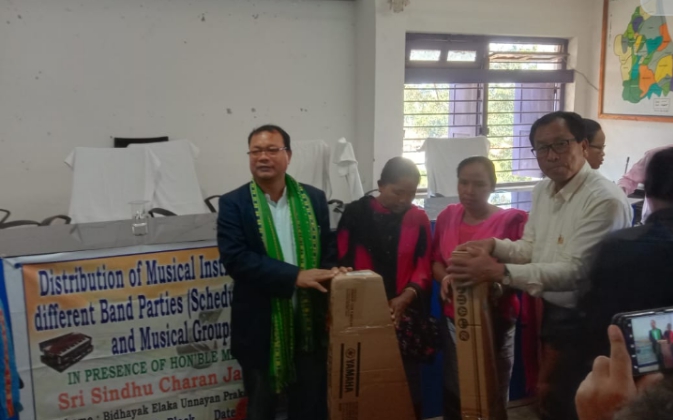 Ampi 41 constituency MLA Sindhu Chandra Jamatia has distributed musical instruments to 9 different Band Parties (Scheduled Tribes) and Musical Groups here in Amarpur block in Gomati Tripura today. As per the report, under the scheme of Bidhayak Elaka Unnayan Prakalpa (BEUP) these musical instruments have been distributed among the band party groups in his area. Aiming to promote the professional work more active and preferable of the musical groups the musical instruments have been distributed free of cost.