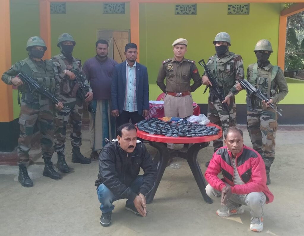 Based on credible information, a joint operation was launched by Assam Rifles and Assam Police. The team apprehended two drug peddlers along with 22,000 Yaba tablets, FICN of Rs 10,500. A mobile phone worth Rs 20,000 was also recovered from the drug peddlers.