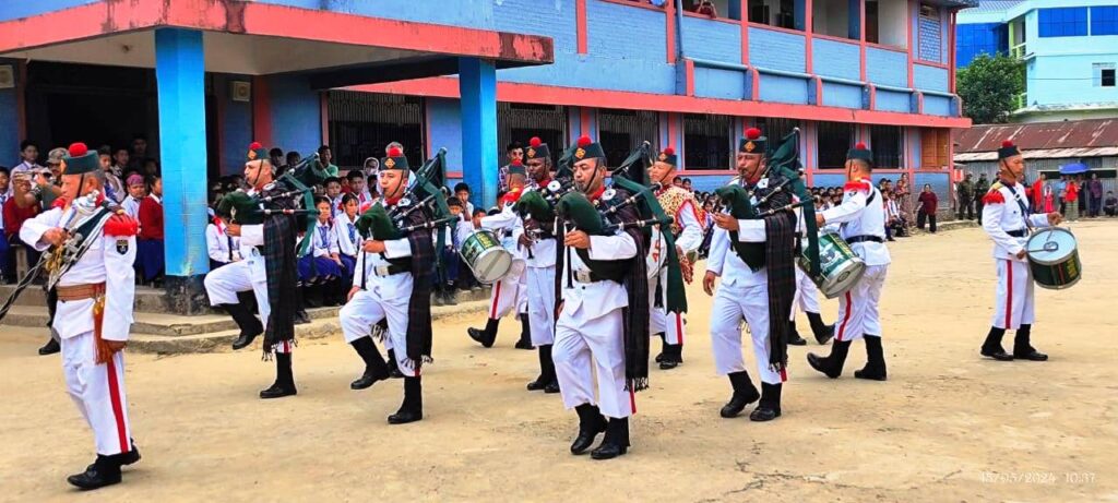 Manipur, 15th of May, 2024 : Assam Rifles on 15 May 2024 conducted a Pipe Band Display at St John’s School Ground, Nungba. The event commenced at 1000h, with the enthralling repertoire of the majestic band, being unfolded amongst the audience of close to 600 people, including 500 children.