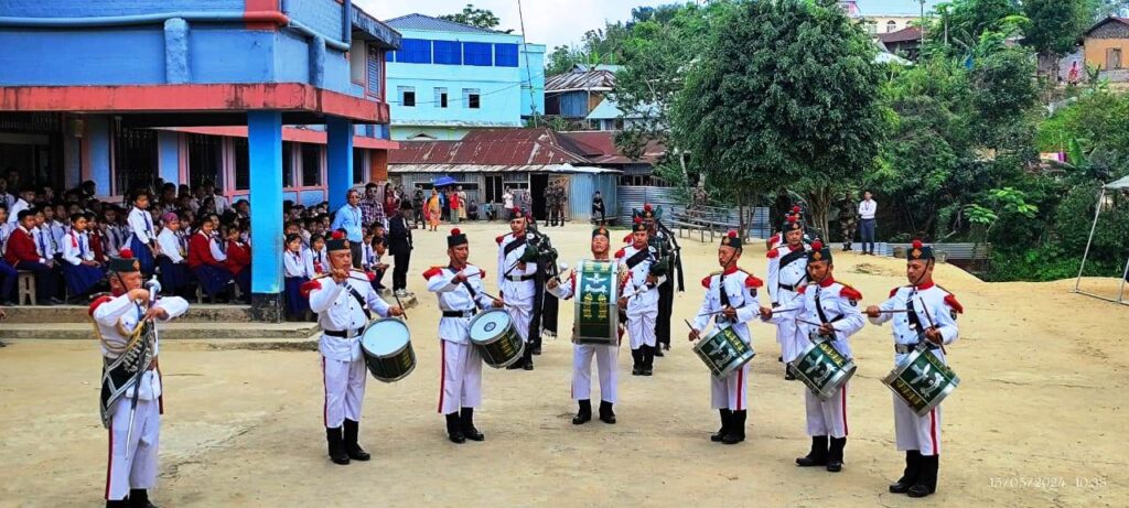 Manipur, 15th of May, 2024 : Assam Rifles on 15 May 2024 conducted a Pipe Band Display at St John’s School Ground, Nungba. The event commenced at 1000h, with the enthralling repertoire of the majestic band, being unfolded amongst the audience of close to 600 people, including 500 children.