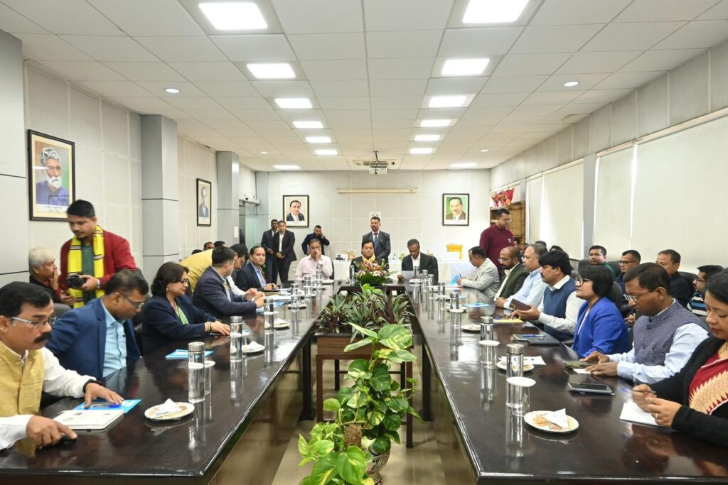 Jorhat, 24th of December, 2023 : The Union Minister of Ports, Shipping & Waterways and Ayush, Sarbananda Sonowalvisited CSIR-North East Institute of Science & Technology (CSIR-NEIST) here today. The Minister assured complete support for an approximate investment of ₹200 crores to build capacity around the medicinal plant sector of the region. This amount is aimed at creating infrastructure that will strengthen the medicinal plant storage for commercial purpose, boosting research and development of the local herbs and plants for medicinal purpose as well as providing a platform for traditional healers to further their treatments to a wider section of the society.