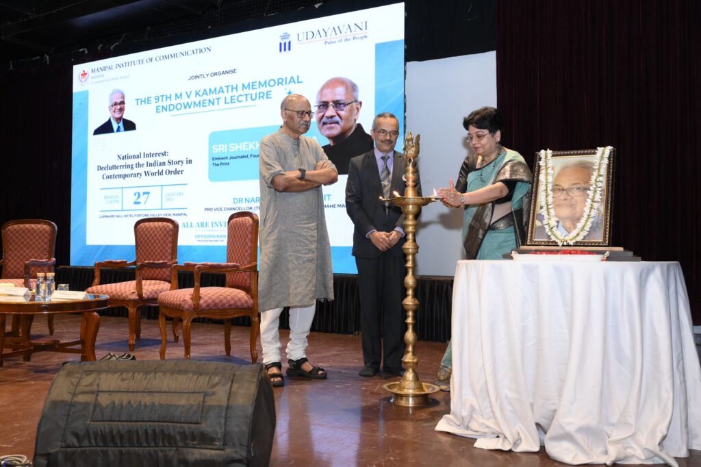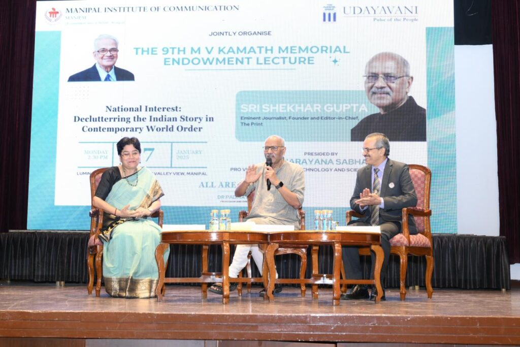 Manipal, Manipal, 28th of January, 2025 : Renowned journalist Shekhar Gupta emphasized the need for India to aim for a growth rate exceeding 7 percent. Delivering the ninth Dr. M.V. Kamath Endowment Memorial Lecture at an event organized by the Manipal Institute of Communication (MIC), Gupta highlighted that India has not witnessed substantial growth over the past decade. He called for introspection rather than self-congratulation.