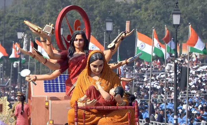 New Delhi, Delhi, 26th of January, 2025 : The tableau of the Ministry of Women and Child Development in the...