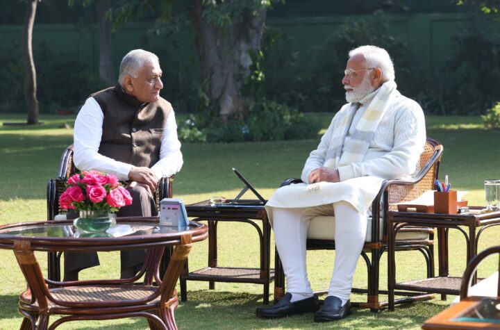 New Delhi, Delhi, 21st of January 2025 : The Governor of Mizoram, Gen V K Singh met the Prime Minister...