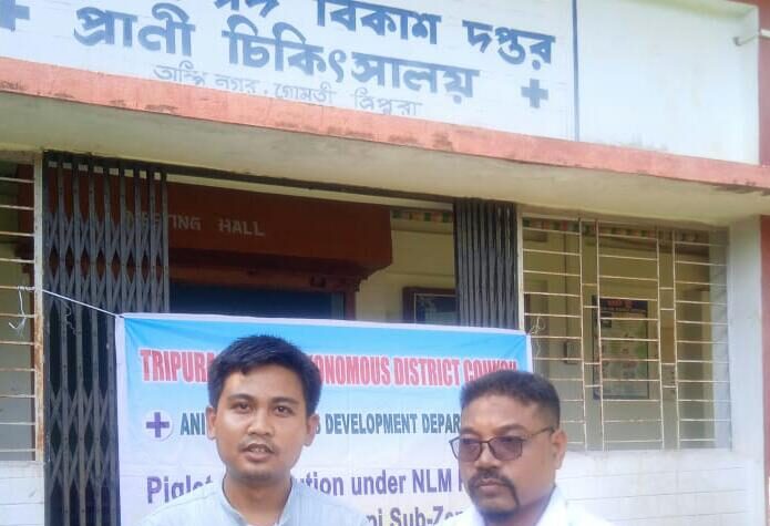 With the initiative of Animal Resources Development Department pigs have been distributed here in Ampinagar veterinary hospital premises in Gomati...