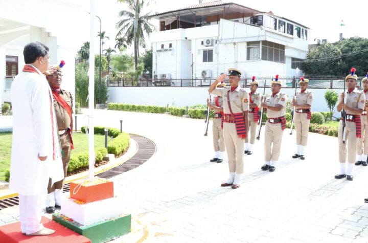 Hon’ble Chief Minister Dr. Manik Saha hoisted the National Flag at CM residence, Agartala on the occasion of Independence Day...