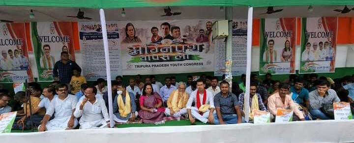 Tripura Pradesh Youth Congress on Monday (18th July, 2022) started stage protest for 72 hours at infront of Agartala City...