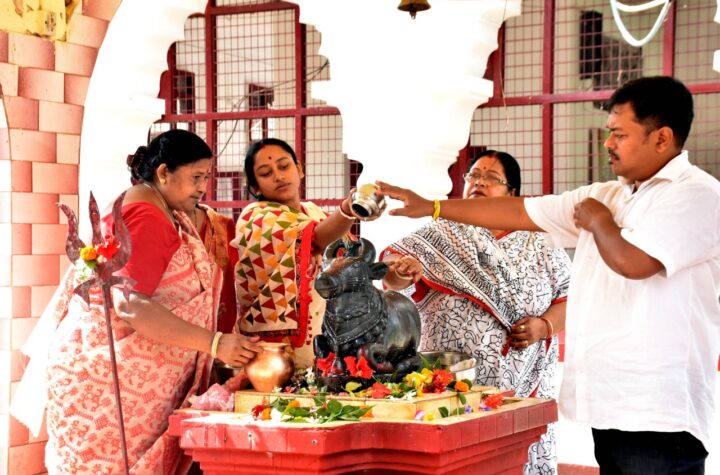Devotees offer prayers to Lord Shiva on the holy month of ‘Shravan or Sawan’ in Agartala on Monday (18th July,...