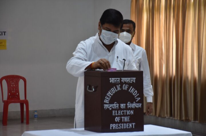 Hon’ble Chief Minister Dr. Manik Saha casts his vote for the presidential election at the lobby of the Legislative Assembly,...