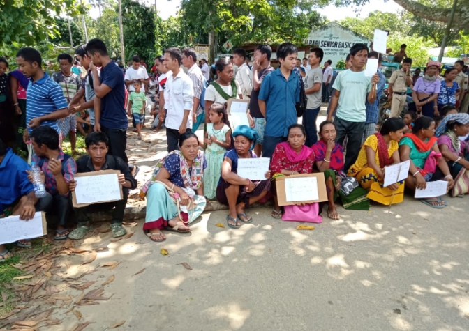 The inhabitants of East Taicholong VC under Ampinagar RD block Gomati Tripura have blocked the Teliamura Amarpur road here in...