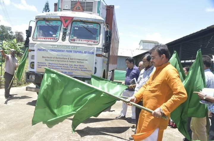 Hon’ble Agriculture, Transport & Tourism Minister Pranajit Singha Roy flagged off pineapple consignment from Tripura to Delhi at Agartala on...