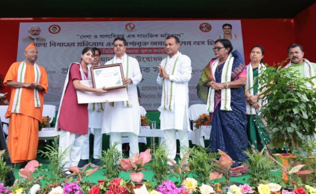 Agartala, Tripura, 17th of July 2025 : With the initiative of the West Tripura Zilla Parishad awareness campaign on Neshamukta Bharat Abhiyan and Child Marriage has been Gandhigram H. S. ( +2) School, Bamutia R. D. Block, Agartala, Tripura on Thursday (17th July, 2025). In the presence of many distinguished dignitaries Hon’ble Chief Minister Dr. Manik Saha inaugurated the event by lighting the lamp.