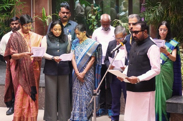 Shri Prataprao Jadhav, Union Minister of State (IC) for Ayush and Minister of State for Health & Family Welfare, Government of India, graced the occasion as Chief Guest and joined officers and staff members of the Ministry in the collective recitation of the Vande Mataram song.