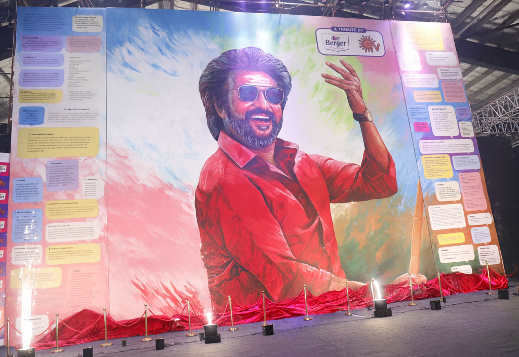 “As one of India’s leading paint companies with a legacy of 100 years, we understand the trust reposed on us and therefore Berger Paints is proud to acknowledge this phenomenal achievement by our Superstar in his extraordinary 50-year journey which has seen his fanbase increase not only within Tamil Nadu, but across India and spread across international borders. The murals being developed to celebrate this milestone have been inspired by the rich & vibrant cultural tapestry of Tamil Nadu, the foundation of his legacy.” said Mr. Abhijit Roy, Managing Director & CEO, Berger Paints India.