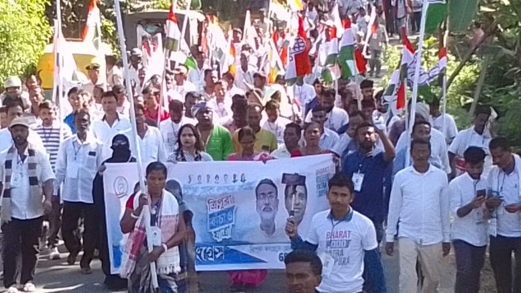 With the initiative of Udaipur Congress committee ‘Bharat Jodo Tripura Bachao Yatra’ rally has been organized in Udaipur on Sunday (20th November, 2022). Tripura Pradesh Congress members have taken participation in this rally and marched on roads. Large number of Congress members participated in this rally.
