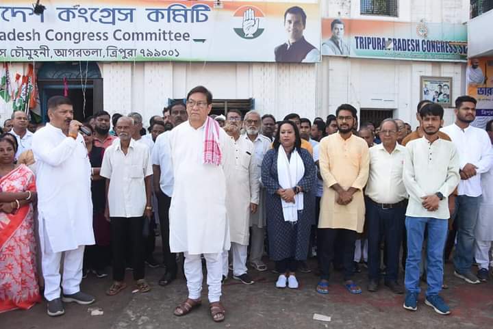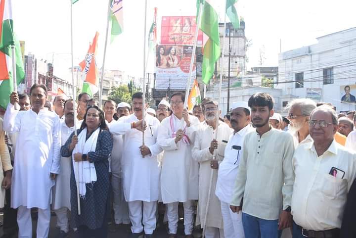 With the initiative of Tripura Pradesh Congress committee Bharat Jodo Yatra rally has been organized here in Agartala on Thursday (8th September, 2022). All India Congress Committee (AICC) Secretary Szarita Laitphlang, Tripura Pradesh Congress President Birajit Sinha, MLA Sudip Roy Barman, Ashish Kumar Saha, Tripura Pradesh NSUI President Samrat Roy and other congress leaders were participated in this rally.