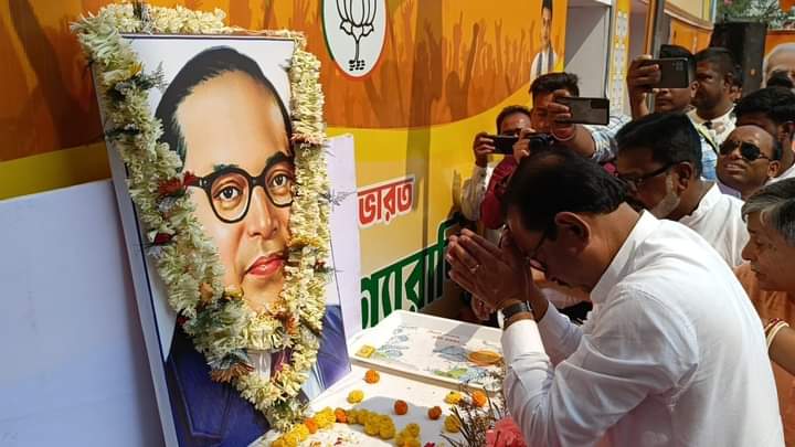 Agartala, 14th of April, 2024 : Tripura Pradesh Bharatiya Janata Party (BJP) celebrated Dr. B. R. Ambedkar Jayanti at BJP election office, Agartala on Sunday (14th April, 2024). Tripura Pradesh BJP President Rajib Bhattacharjee paid floral tributes to Dr. BR Ambedkar on his Birth Anniversary. Other BJP leaders and activists also paid tribute to Dr. B.R. Ambedkar on his birth anniversary.