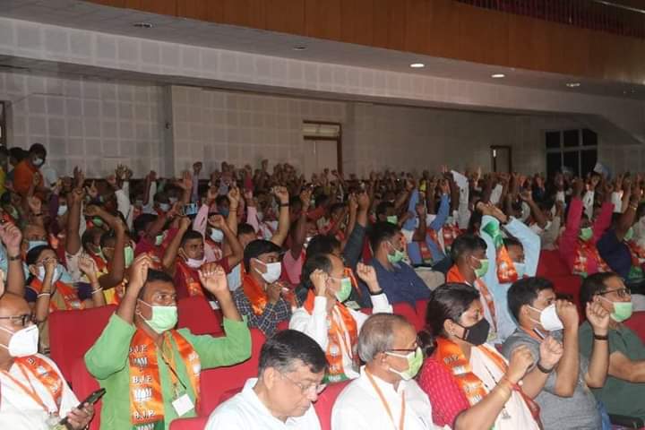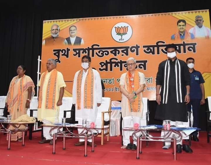 Bharatiya Janata Party (BJP) held organizational meeting at Muktadhara auditorium, Agartala on Friday (15th July, 2022). Dilip Ghosh, MP, Medinipur & National Vice-President of Bharatiya Janata Party (BJP), Hon’ble Chief Minister Dr. Manik Saha, Hon’ble Deputy Chief Minister Jishnu Dev Varma, Former Chief Minister Biplab Kumar Deb, Hon’ble MP and Union Social Justice and Empowerment Minister Pratima Bhoumik, Hon’ble MP Rebati Tripura and other ministers, senior leaders attended the meeting.