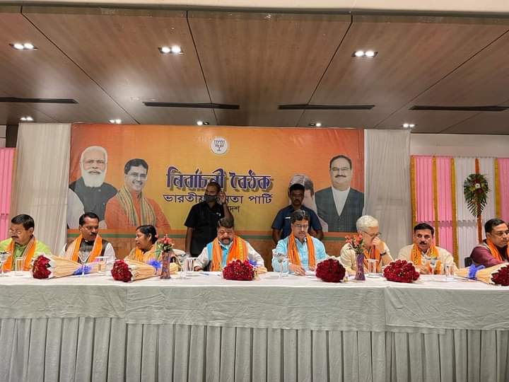 Bharatiya Janata Party (BJP) held organizational meeting on the occasion of the upcoming Tripura by-elections at Agartala on Thursday (2nd June, 2022). Hon’ble Chief Minister Dr. Manik Saha, Hon’ble Deputy Chief Minister Jishnu Dev Varma, Hon’ble Information & Cultural Affairs, Sports, PWD (DWS) minister Sushanta Chowdhury, Hon’ble MP and Union Social Justice and Empowerment Minister Pratima Bhoumik, Hon’ble MP Rebati Tripura, National General Secretary, BJP Kailash Vijayvargiya, VP BJP, Tripura Pradesh Rajib Bhattacharjee, BJP State General Secretary Papia Datta and other senior leaders were present at the meeting.