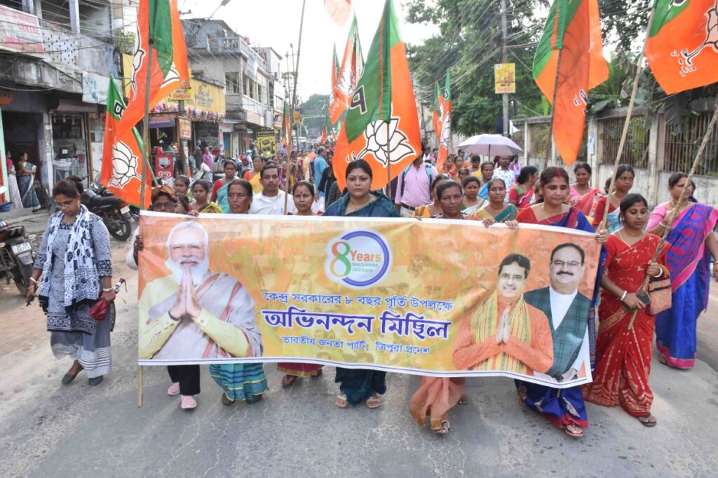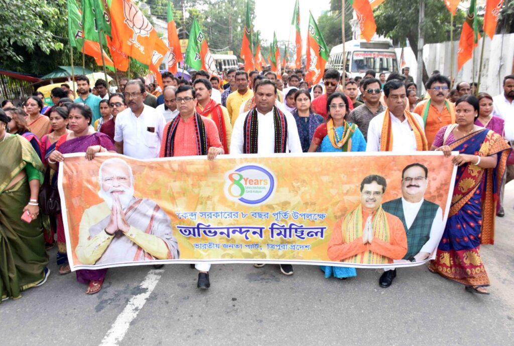 Spread the love Bharatiya Janata Party (BJP) Tripura Pradesh organized a rally to mark the 8th Anniversary of Central Government (Bharatiya Janata Party Govt.) at Agartala on Tuesday (31st May, 2022). About The Author tripurastarnews30 See author's posts Related Continue Reading Previous Virtual Interaction Programme With Beneficiaries Of Garib Kalyan Yojana From Different States.Next Tripura Pradesh Trinamool Congress Campaign In Agartala-6 Assembly Constituency For By-Election. Leave a Reply Cancel replyYour email address will not be published. Required fields are marked *Comment * Name * Email * Website Save my name, email, and website in this browser for the next time I comment. More Stories 2 min read Agartala Tripura News Observance of World Oral Health Day, 2026. March 21, 2026 tripurastarnews30 2 min read Agartala Tripura News Piping Ceremony & Conference Of 13 Bn NCC Organized. March 21, 2026 tripurastarnews30 2 min read Agartala Tripura News Raid On Drug Den In Padmapur: One Youth Detained, Police Begin Investigation. March 21, 2026 tripurastarnews30