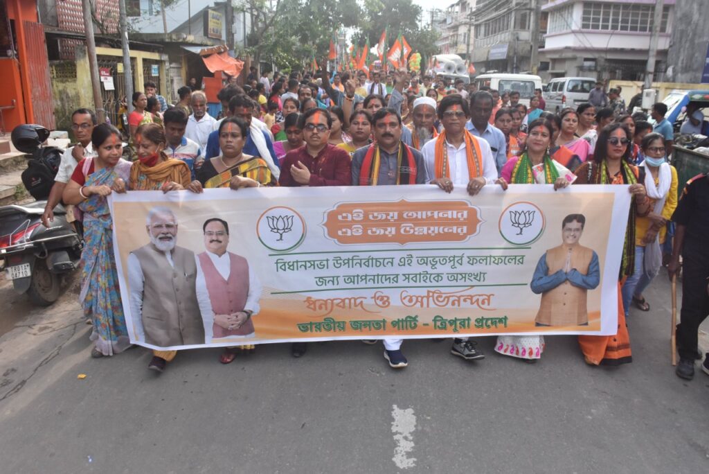 Bharatiya Janata Party (BJP) organized victory celebration rally after winning By-Election at Agartala on Monday (27th June, 2022).