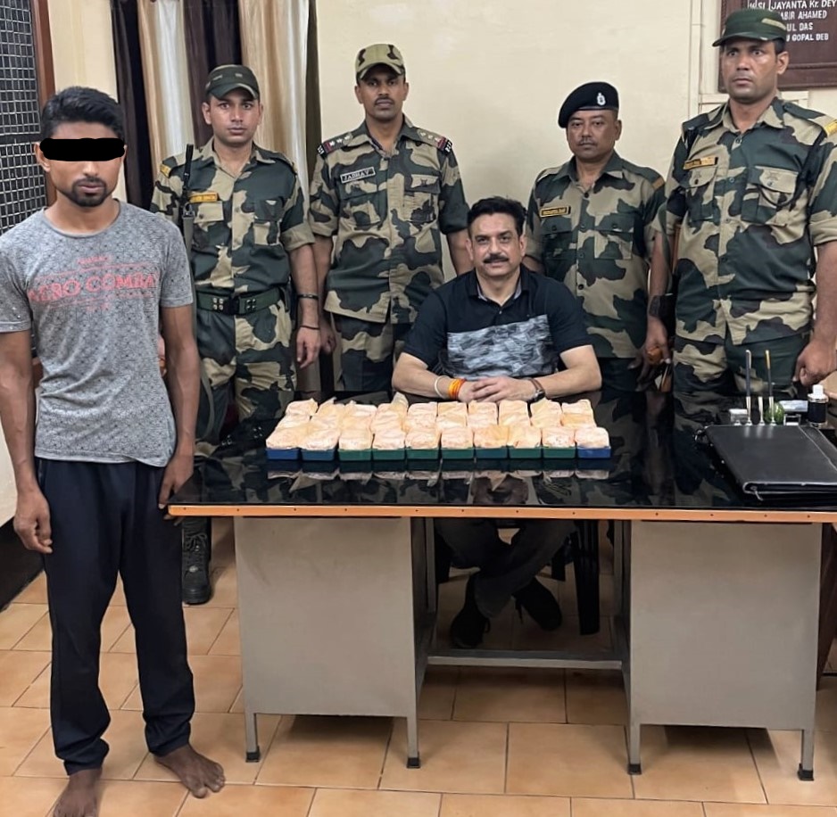 On 16th April, 2022 (Afternoon), Intelligence Team of BSF Tripura Frontier along with Police party of Police Station- Jirania, District-West Tripura conducted a joint search Operation in house of Abdul Matalim S/o Abutaher Miah R/o Bhadra Mishy para, PO- NIT, PS- Jirania, Agartala (Tripura). During joint search, party recovered a bag containing “30 plastic Cases of suspected Brown Sugar weighing appx. 360 Gms worth Rs. 1,08,00,000/-“, which were clandestinely hidden in the house and apprehended the house owner namely Abdul Matalim (30 Yrs).The detained person along with seized narcotics was handed over to police party on the spot for further course of legal action under NDPS Act.