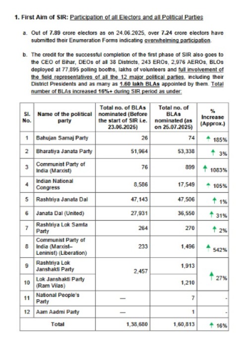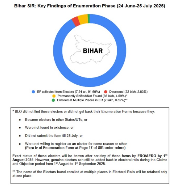 Bihar SIR: Key Findings of Enumeration Phase (24 June-25 July 2025).