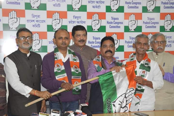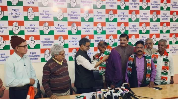 Agartala, 13th of December 2023 : With the initiative of Tripura Pradesh Congress Committee (TPCC) a joining programme and press meet has been organized at Congress Bhavan, Post office Chowmuhani, Agartala on Wednesday (13th December, 2023).  Being inspired by the National Congress Party Bijoy Krishna Saha one of the leaders of 10323 Teachers has come under the banner of National Congress party. Social activists Bidhan Chandra Paul, Aparjit Dey also joined National Congress Party today. TPCC President Ashish Kumar Saha and Congress MLA Sudip Roy Barman have accepted those new comers into Congress party and motivated them to work for the party. In today’s programme apart from Congress MLA Sudip Roy Barman other leaders were present in the programme.