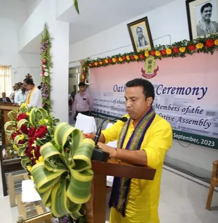 Bindu Debnath on Tuesday (12th September, 2023) took oath as the Member of Tripura Legislative Assembly at the lobby of the Legislative Assembly, Agartala. Hon’ble Speaker of the Legislative Assembly Biswa Bandhu Sen administered the oath of office to the Bindu Debnath oath as the Member of Tripura Legislative Assembly. Bharatiya Janata Party (BJP) Dhanpur-23 Assembly Constituency candidate Bindu Debnath has won the Dhanpur-23 by defeating CPI(M) candidate Kaushik Chanda by 18,871 votes.