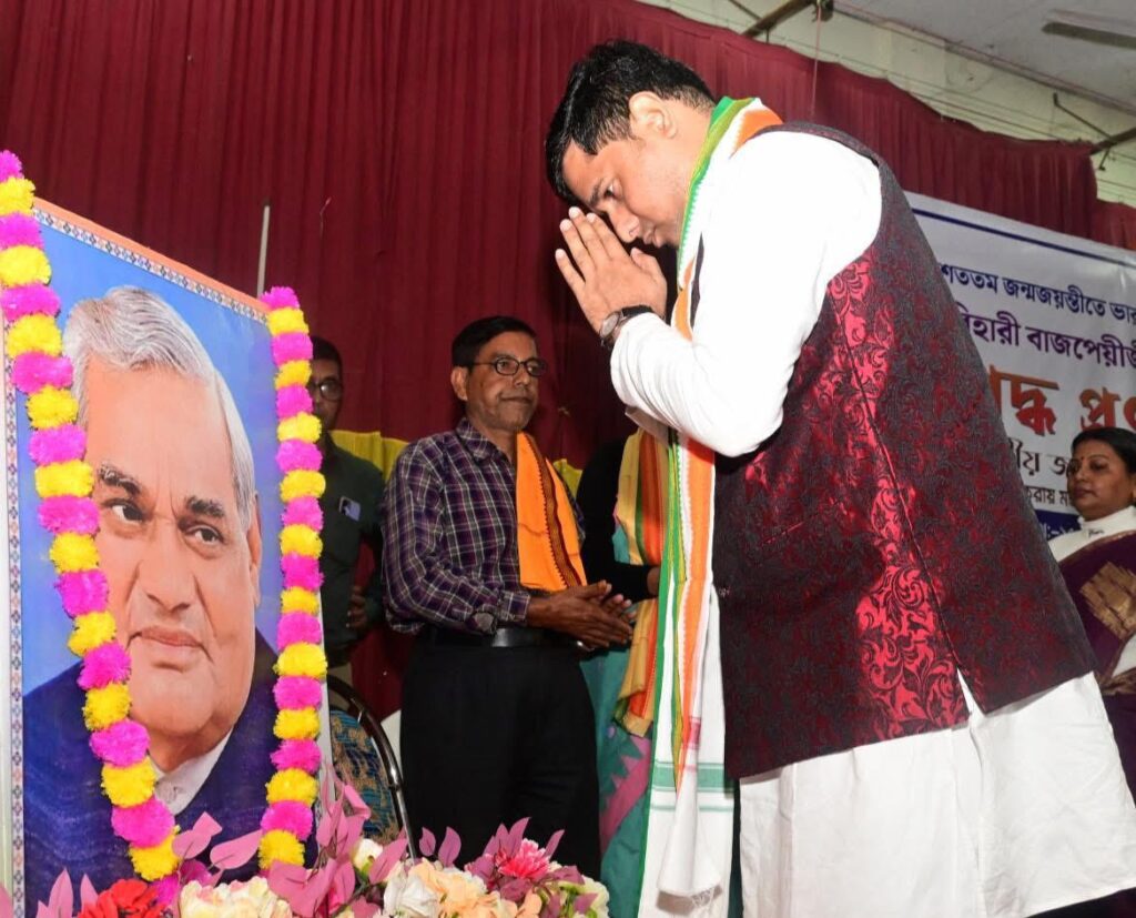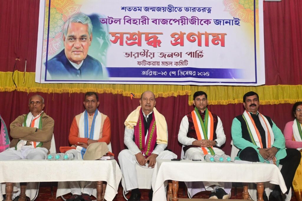 Fatikroy, Tripura, 25th of December 2024 : With the initiative of Bharatiya Janata Party Fatikroy Mandal celebrated former Prime Minister late Atal Bihari Vajpayee’s birth centenary at Fatikroy on Wednesday (25th December, 2024). In the presence of many dignitaries Hon’ble SC Welfare, ARD, Fisheries Minister Sudhangshu Das has inaugurated the programme by lighting the ceremonial lamp.