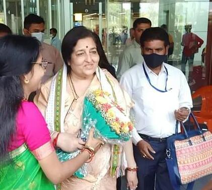 BJP State General Secretary Papia Datta welcomed and received Singer Anuradha Paudwal at Maharaja Bir Bikram (MBB) International Airport, Agartala on Saturday (23rd April, 2022). Anuradha Paudwal is an Indian playback singer and occasional bhajan singer who works predominantly in Hindi cinema.