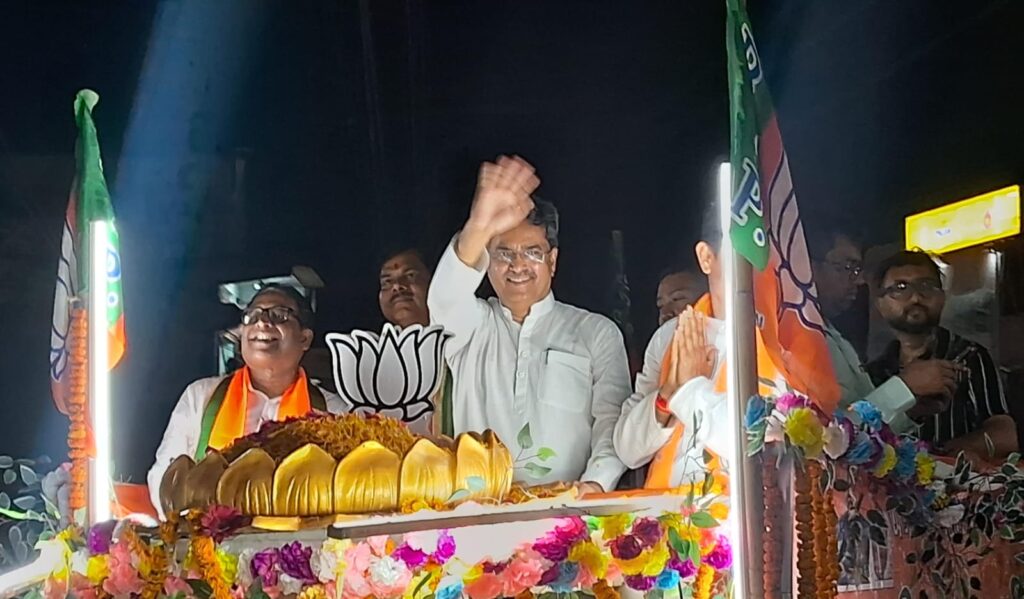 As evening fell, the entire town was draped in saffron colors. Thousands of party workers and supporters joined the rally carrying party flags, banners, and placards with slogans such as “BJP again in power” and “Vote for the lotus for development.” The scale and disciplined nature of the procession caught the attention of the general public.During the rally, Chief Minister Manik Saha greeted people and delivered brief speeches at various points. He stated, “To accelerate the development of Dharmanagar, it is essential to ensure the victory of the BJP candidate. Our government believes in development -oriented politics and is working tirelessly for the welfare of the people.” He also claimed that BJP remains the only viable option to maintain peace, stability, and continuity of development in the state.