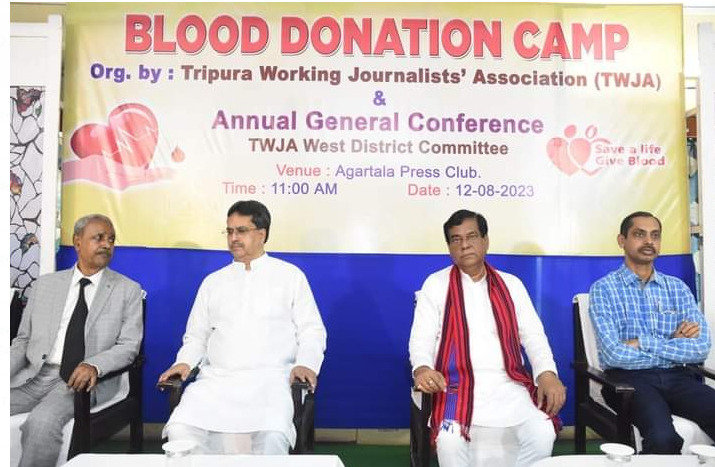With the initiative of Tripura Working Journalists’ Association (TWJA) organized Voluntary Blood Donation Camp and Annual General Conference at Agartala Press Club on Saturday (12th August, 2023). Hon’ble Chief Minister Dr. Manik Saha inaugurated the Voluntary Blood Donation Camp by lighting the lamp.